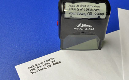 We have over 25 years experience in the rubber stamp industry and specializes in custom stamps for the home, office, and business setting. In addition to the stamps detailed below we offer line stamps for checks and business cards, directional stamps for packing and documents, received, faxed, filed, informational and so much more. We offer self-inking or stamp pads, whichever you prefer. Come see us or e-mail us your requests.